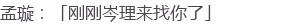 孟璇:「我也没告诉他你去哪里了,除了我只有老大知道你回老家了,但是老大刚刚外出了,他谁也问不着,嘻嘻」