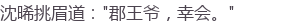 二人刚走到茶馆门口,便有一人领着小厮莽撞地冲进来,沈?忙拉着小翠往一旁躲了躲,那人往前冲了一步,忽然退回来,一张脸有几分英俊,但眼底青黑,一双眼紧紧盯着沈?,面上露出自以为潇洒的笑:"小姐如此美丽,贵姓啊?"