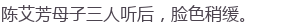 傍晚,陈艾芳母子俩在回家的路上,也听说了这事。母子俩的脸色瞬间就沉了下来,赶紧回家。