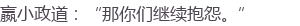 朱襄把嬴小政提到膝盖上揉搓:“你说得很有道理,但该抱怨的时候还是要抱怨,这是解放压力的一种方式。”