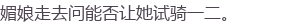 驯兽倌儿原还想替媚娘牵马执鞭,让她只坐在马上达下就算了。待见媚娘上马姿势娴熟,这才撒手,退后几步。