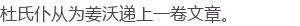他刚要发问,就听姜侍郎问道:“杜长史身上有无铜钱?”